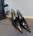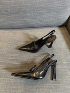 POINTED-TOE SLINGBACK PUMPS IN BLACK SHINY CALFSKIN
