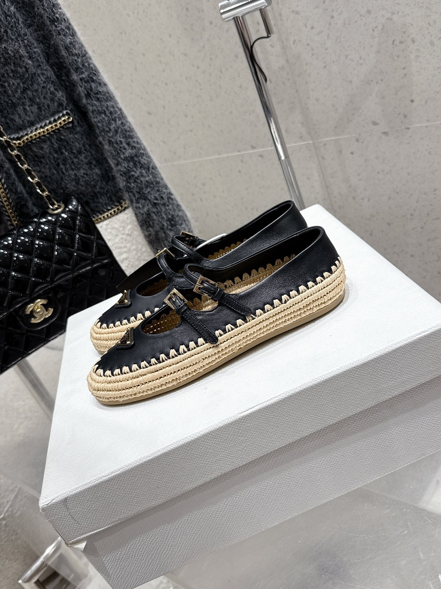 Pra 2025 Ballet Flat Black Beige Cowhide Woven 554289