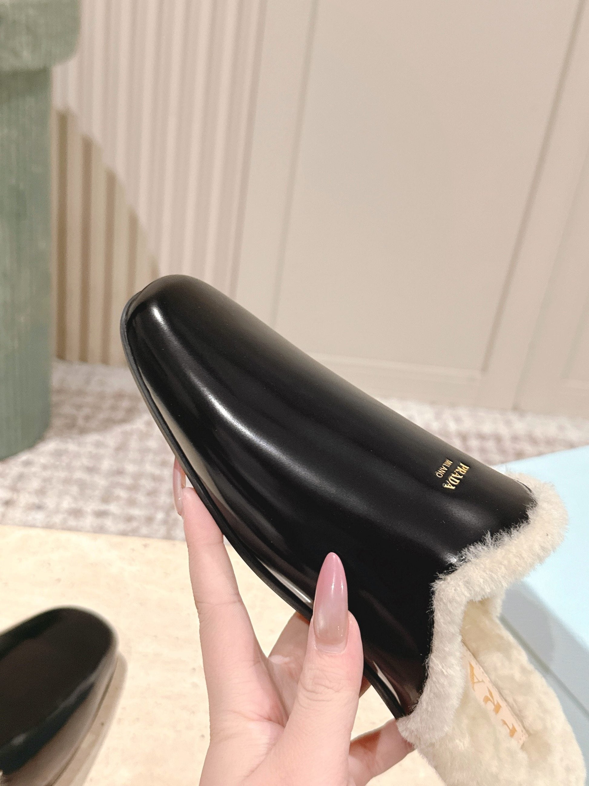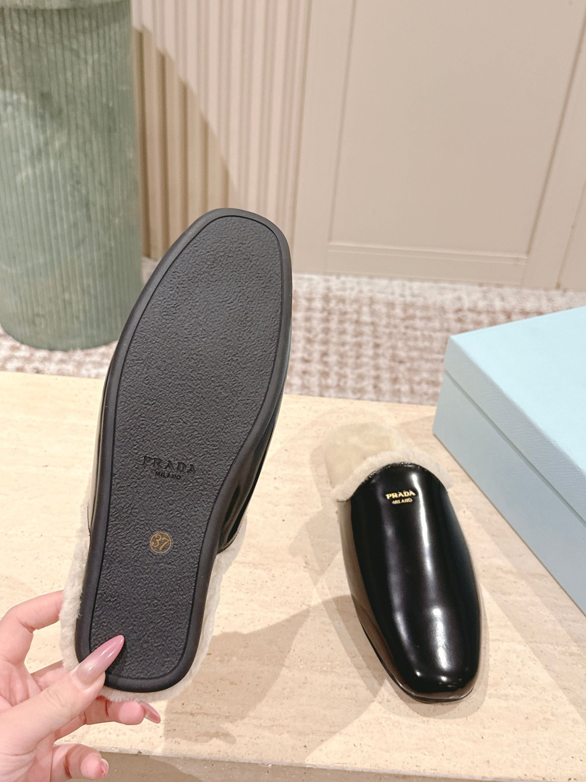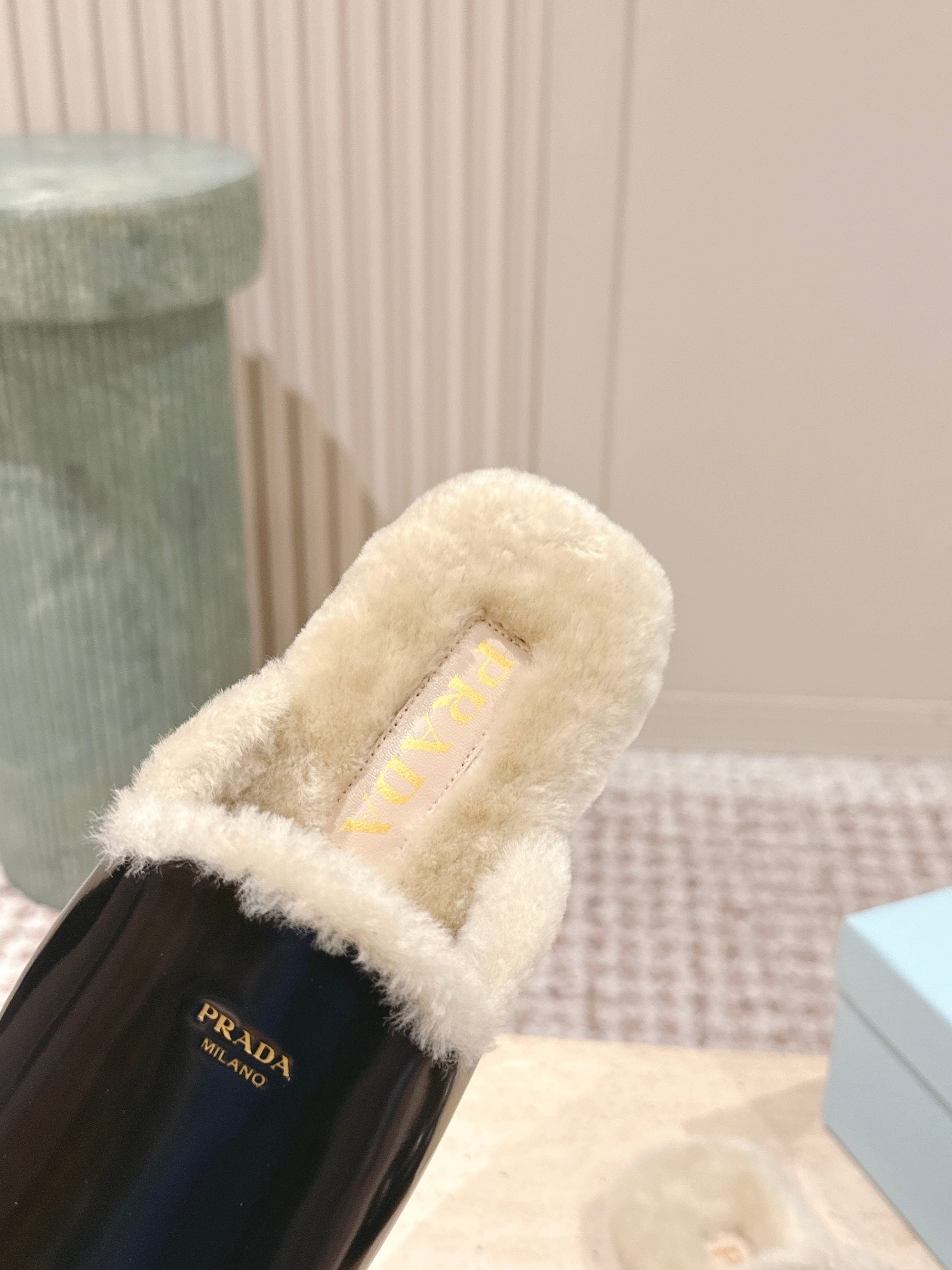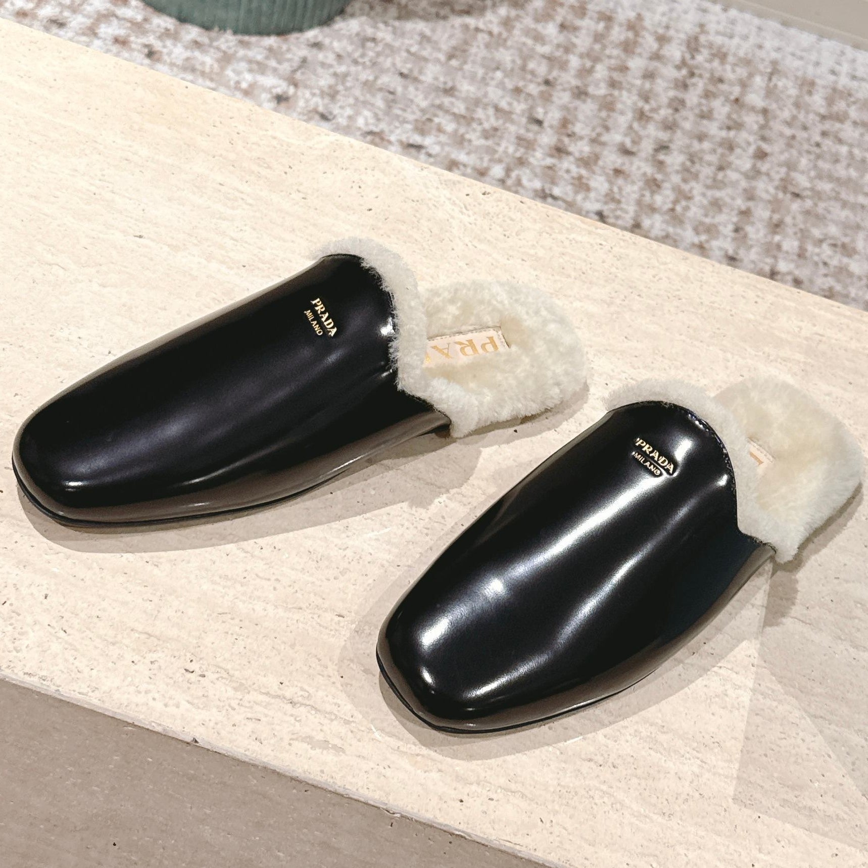 Pra 2025 Mule Black Beige Cowhide Wool 556281