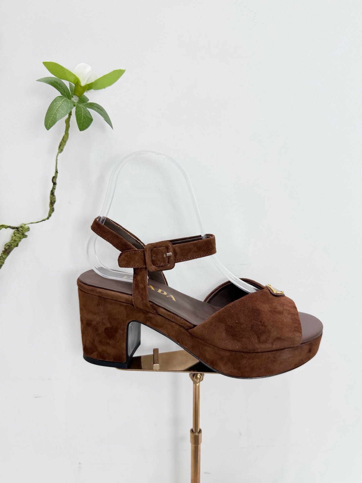 PRA 26SS Platform Sandals 75 Dark Brown Suede Sheepskin 592389