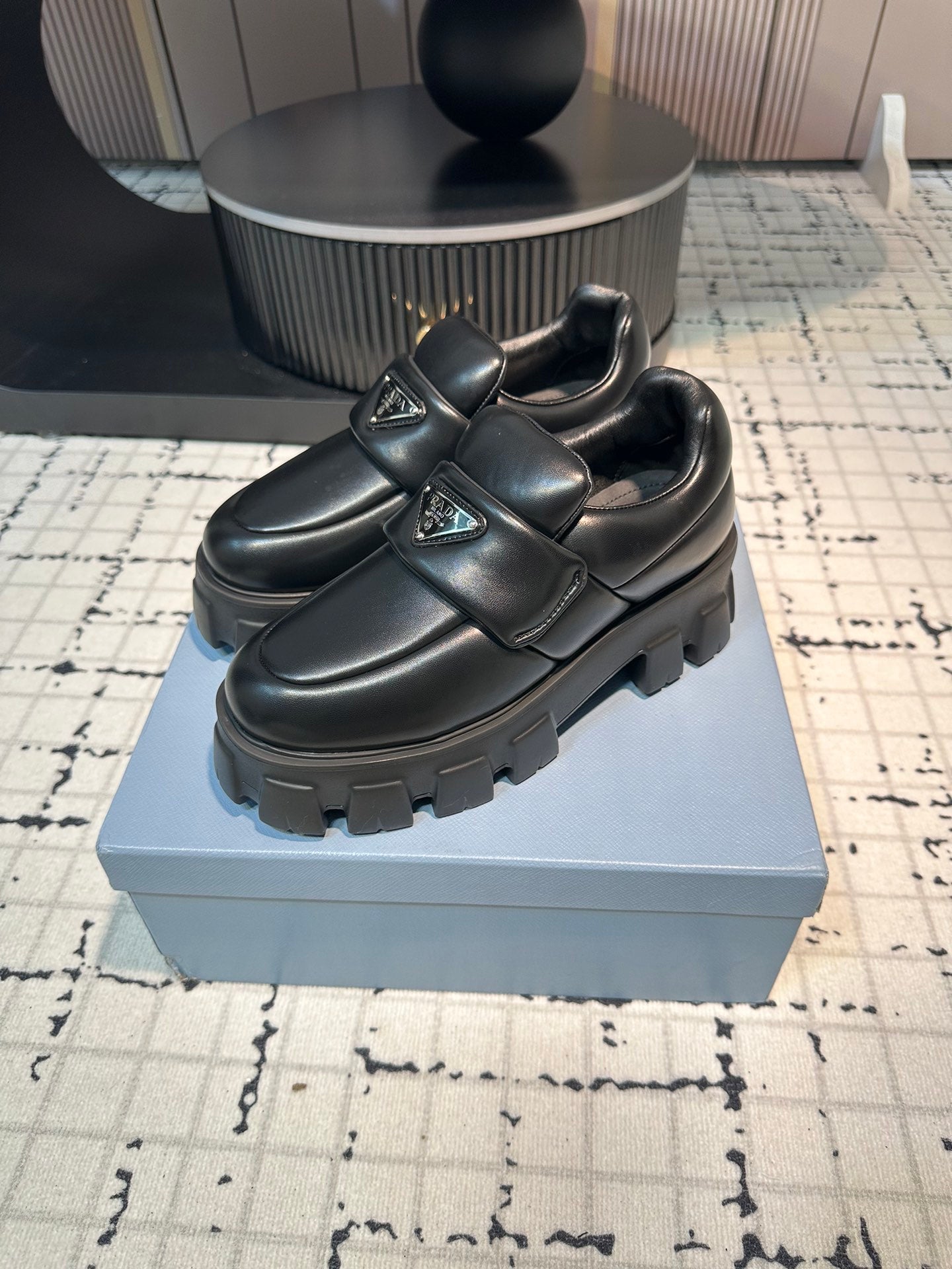 PRA BRUSHED MONOLITH LOAFERS BLACK LAMBSKIN