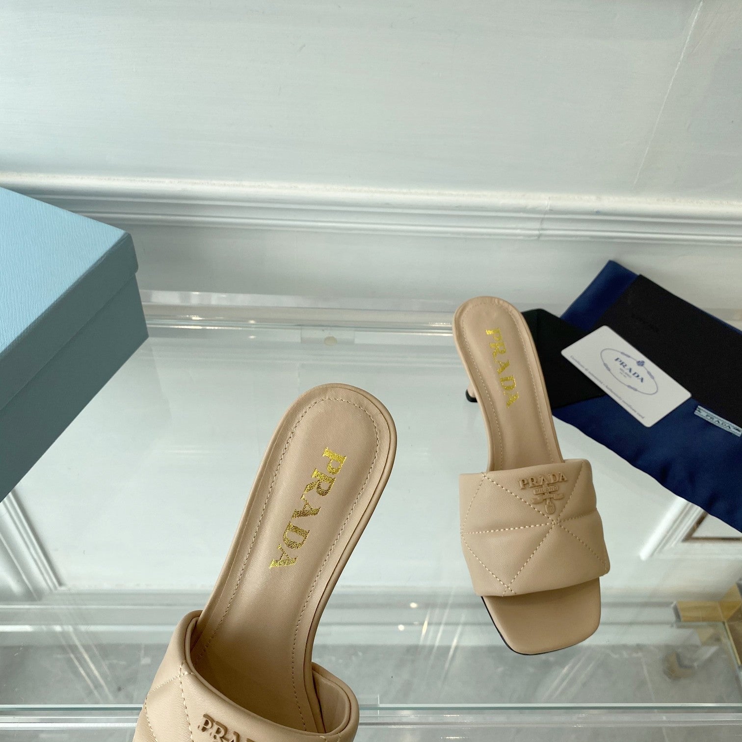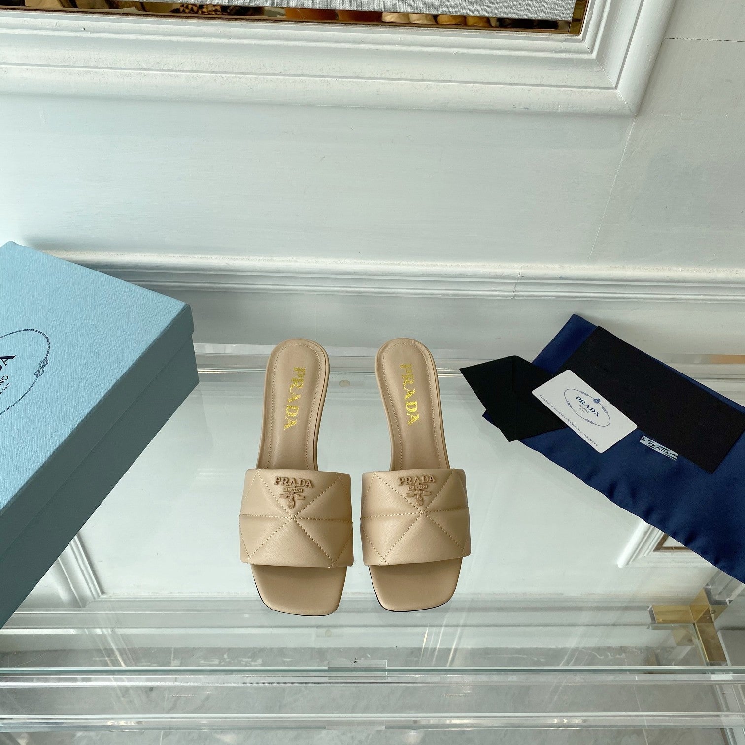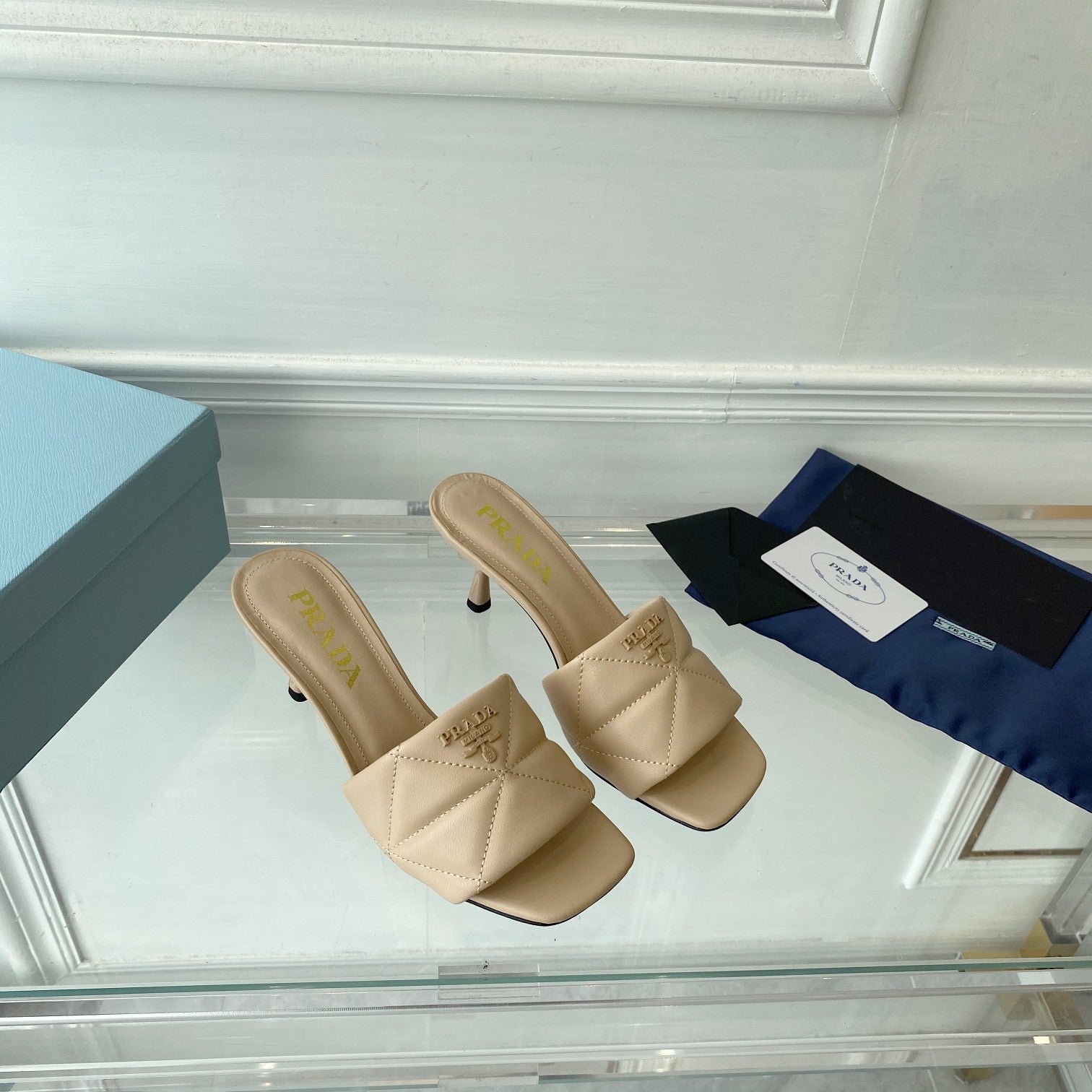 PRA QUILTED HIGH HEELS SANDALS 65 BEIGE LAMBSKIN