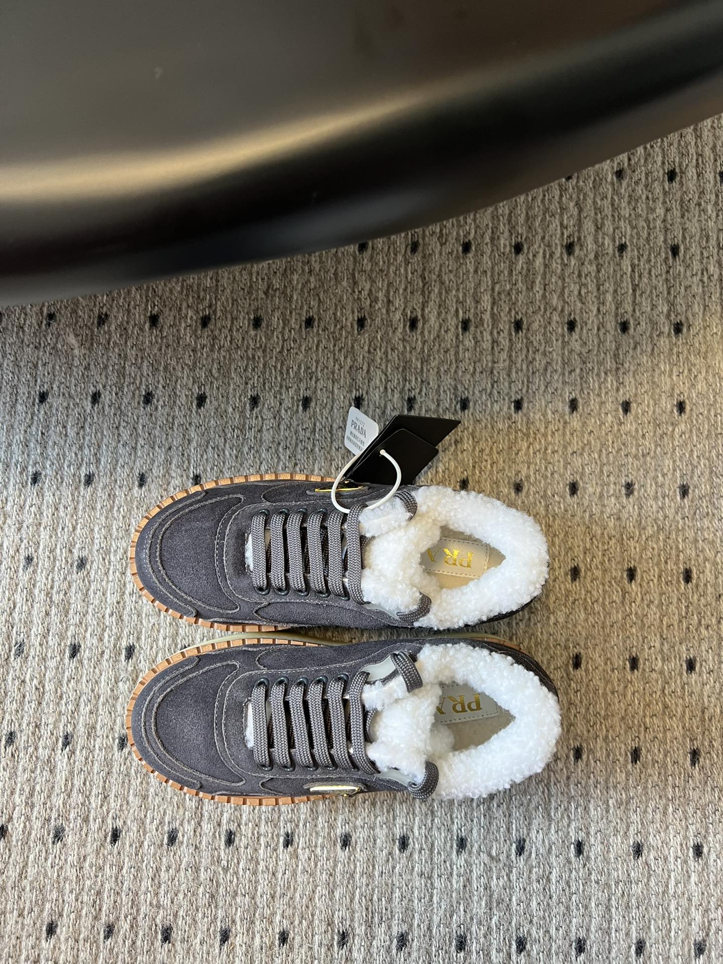 Prada 25s Mid-Top Sneaker Dark Gray Suede And Wool 538434