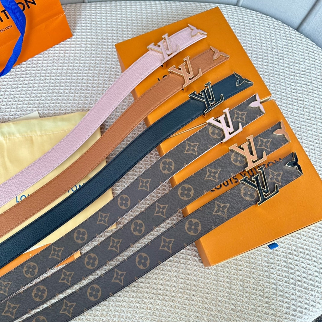 Pretty LV 30mm Reversible Belt Black Gold Buckle Black Brown Leather