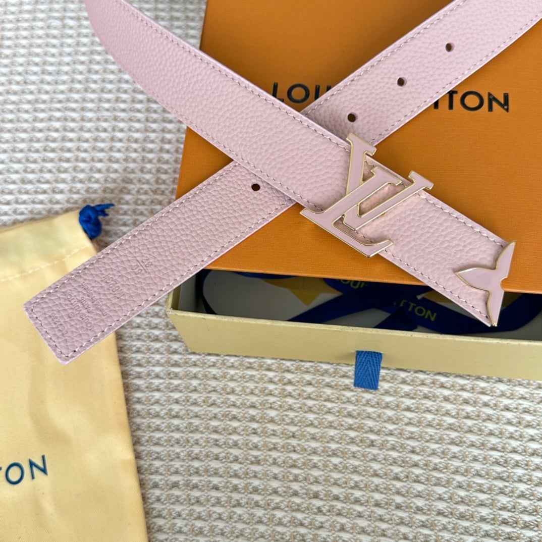 Pretty LV 30mm Reversible Belt Pink Gold Buckle Pink Brown Leather