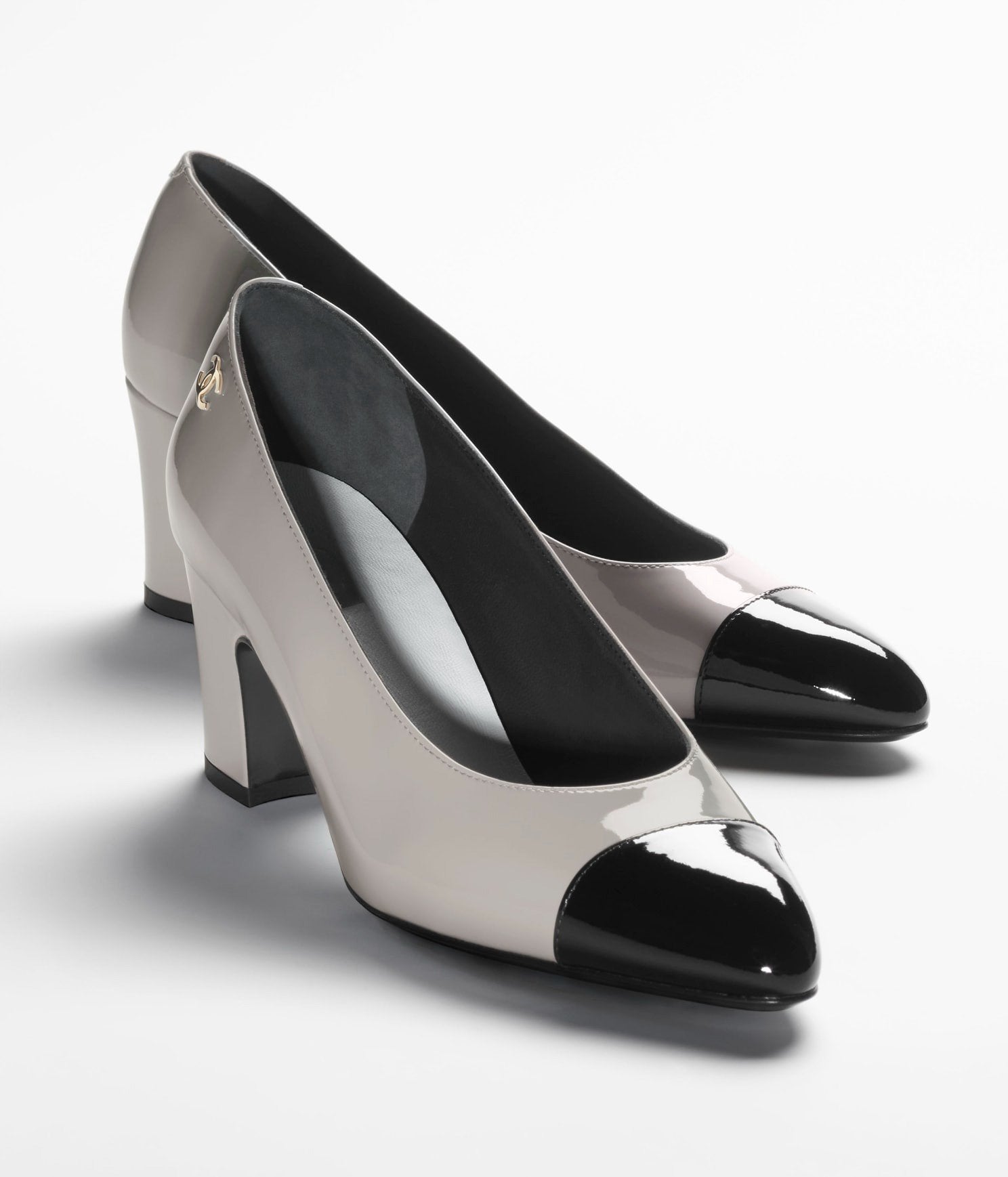 pumps light gray black patent calfskin