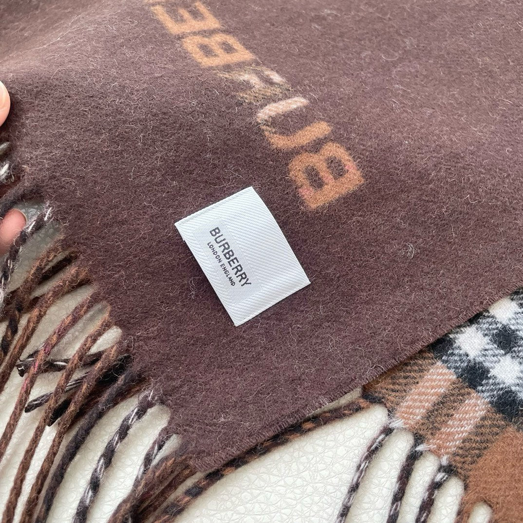 REVERSIBLE CHECK CASHMERE SCARF 180 CM CHOCOLATE BROWN 405498