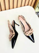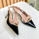 Rockstud Bow Slingback Black and Rose Cannelle Calfskin With Matching Studs