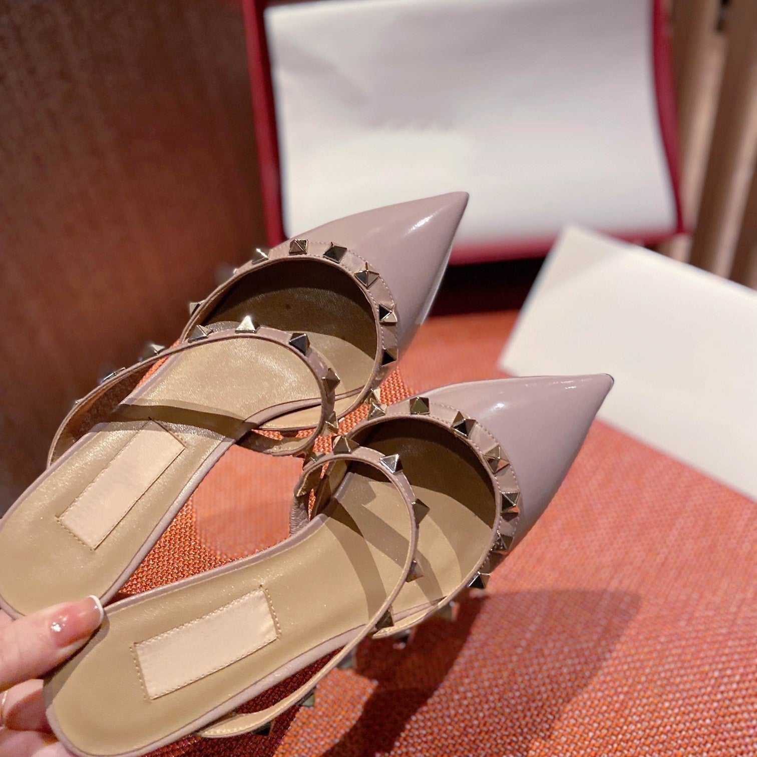 Rockstud Slingback Ballerina Flats Rose Cannelle Leather Cross Straps