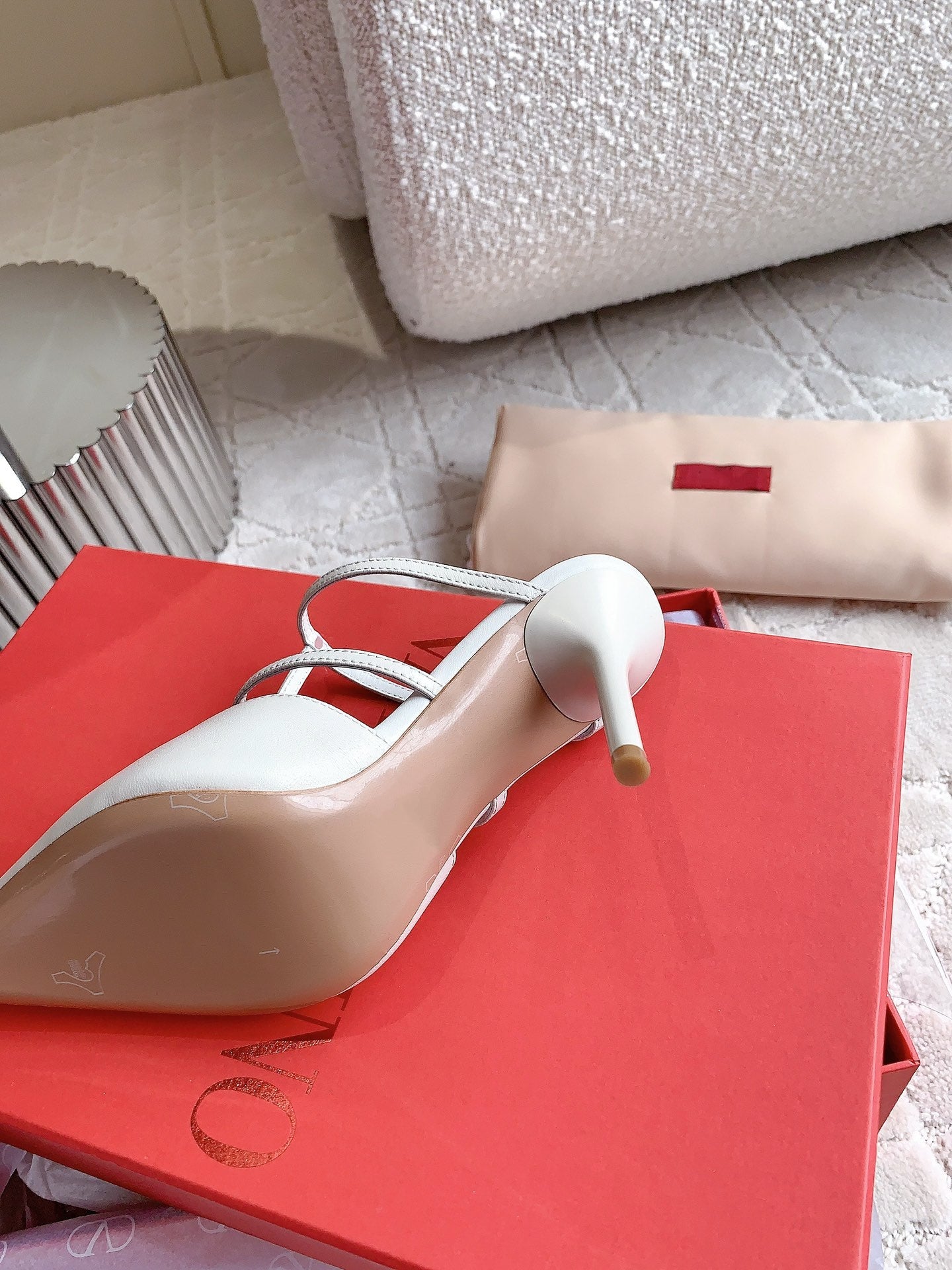 Rockstud Wispy Calfskin Mule 90mm Matte White