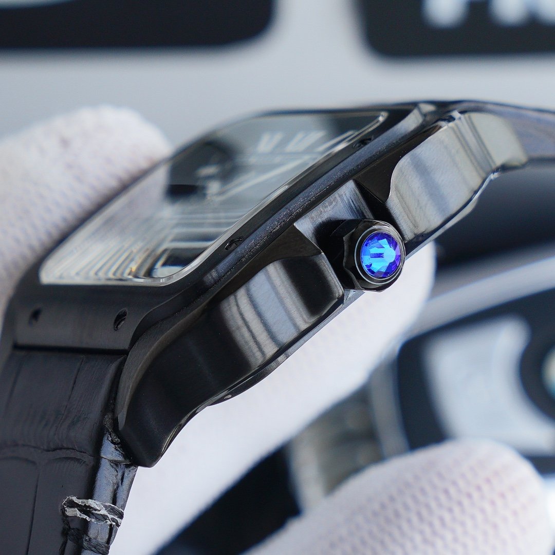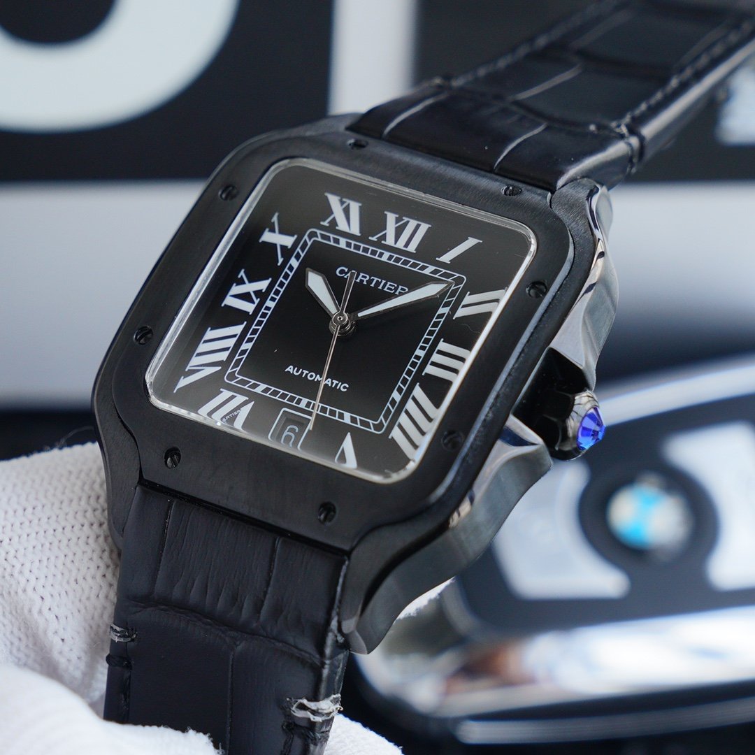 SANTOS 40MM BLACK CASE LEATHER STRAP