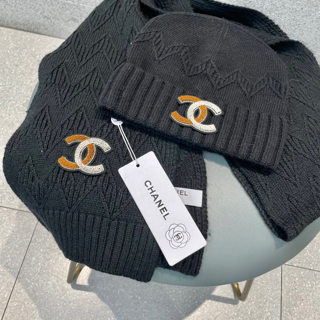SET HAT AND SCARF IN BLACK WOOL 420823