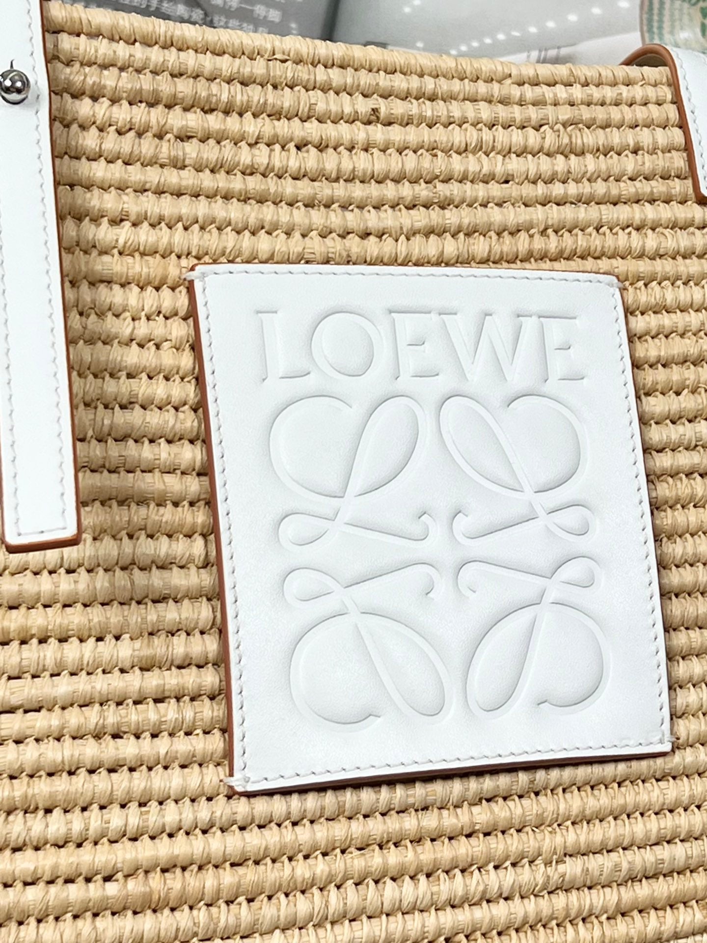 SMALL SQUARE  28 BASKET BAG IN RAFFIA AND WHITE CALFSKIN