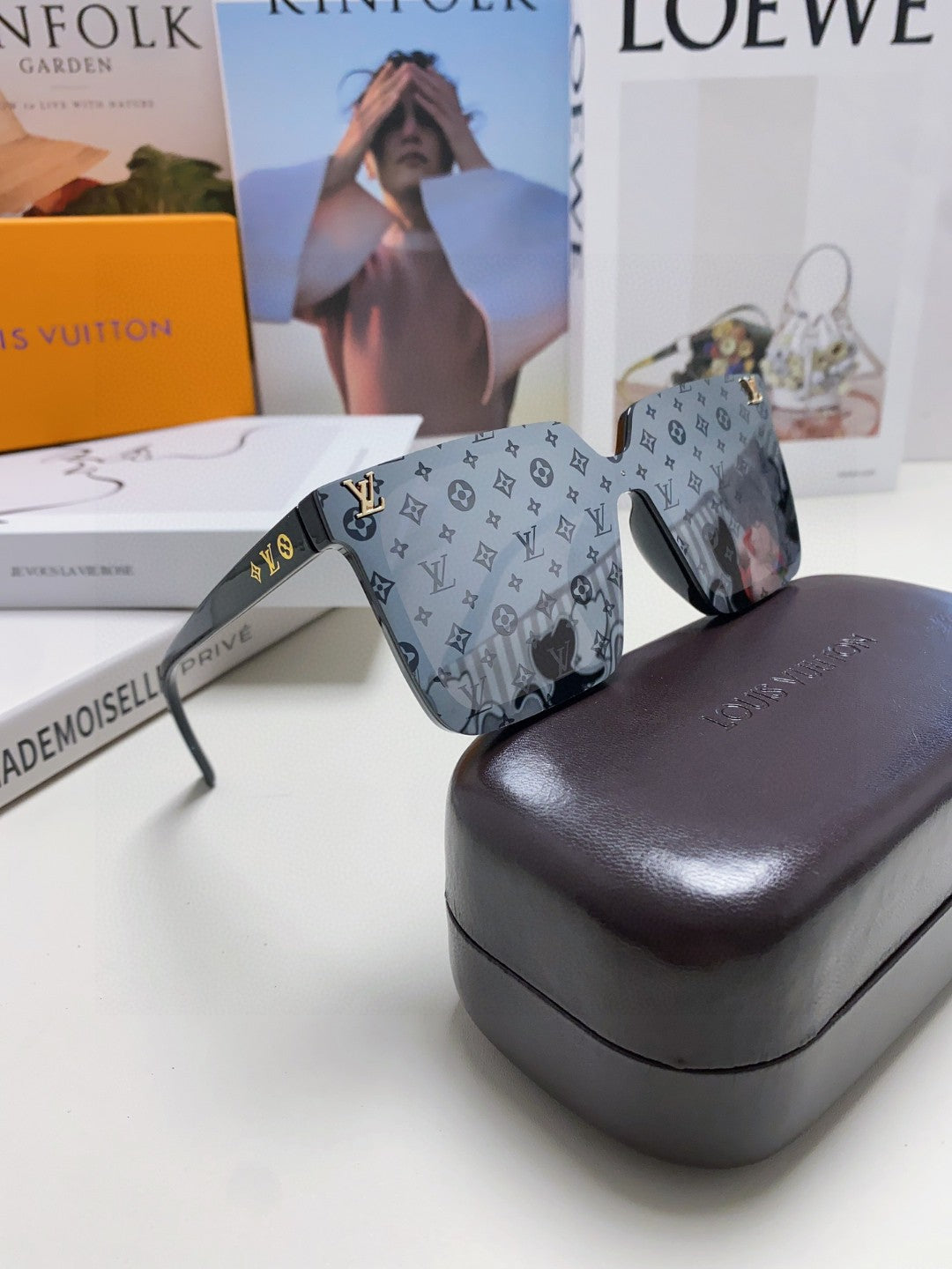 SQUARE SUNGLASS 581366 IN BLACK ACETATE MONOGRAM MASK ON LENS