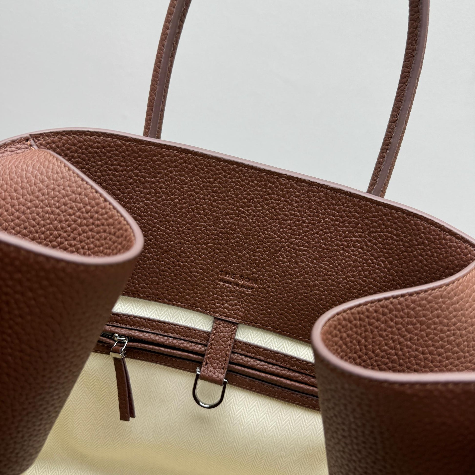 The Row Margaux 15 38cm Tote Bag Brown Grained Calfskin