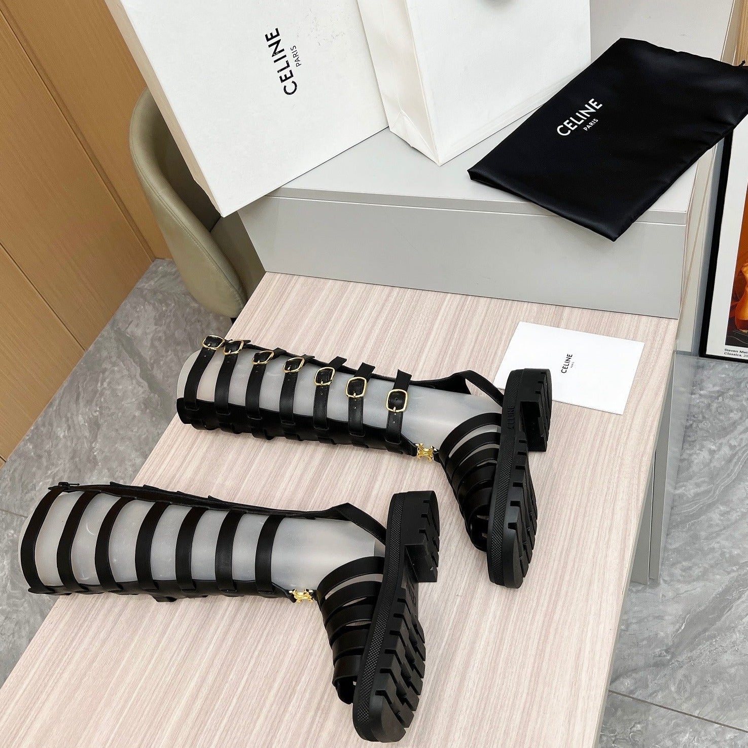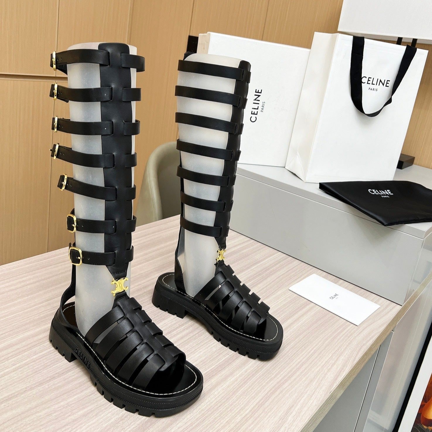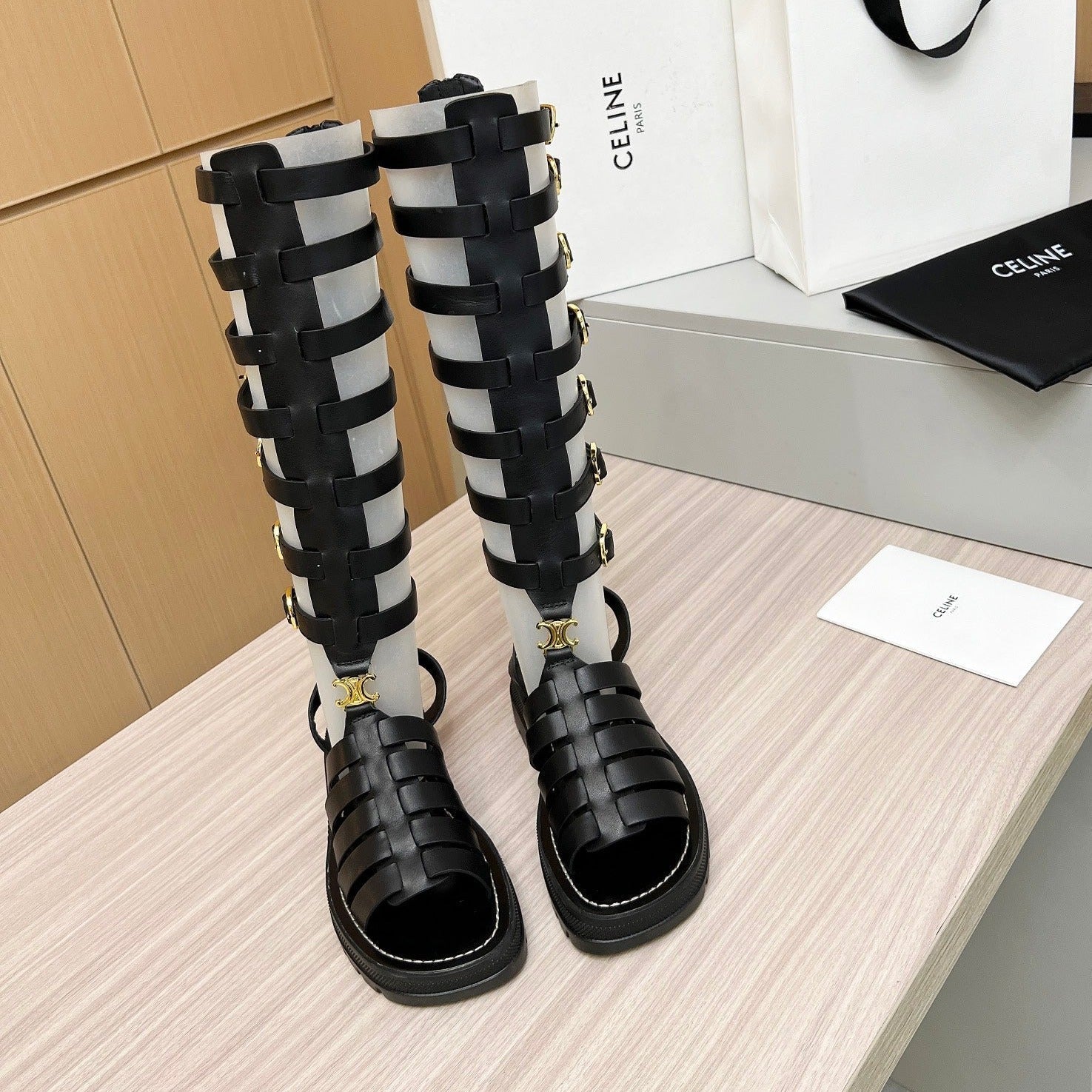 Triomphe high boots leather buckles Black