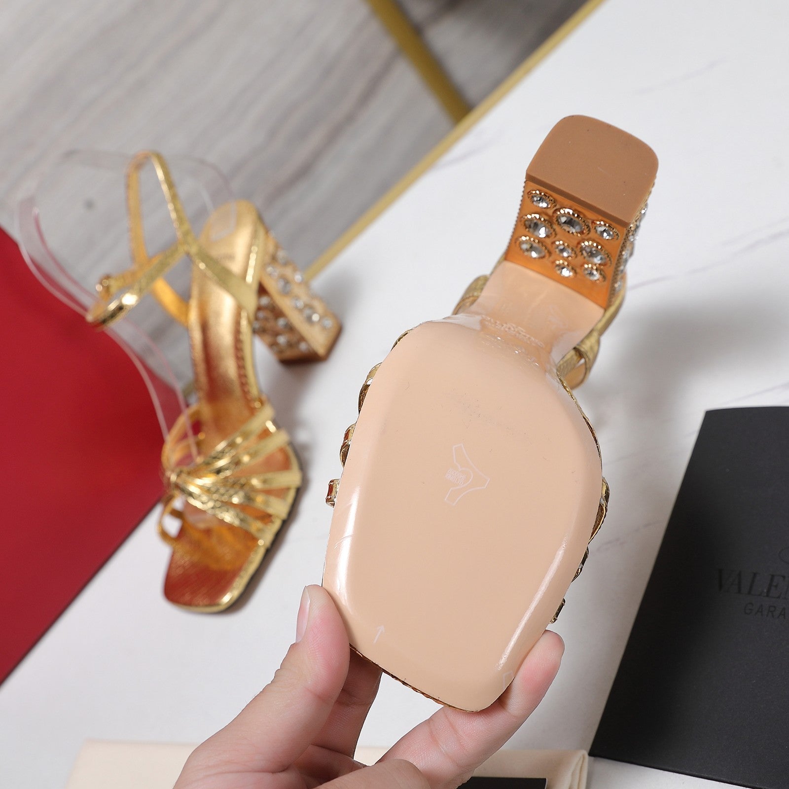 VT 2025 Diamond Heel Sandals Gold Cowhide 289510
