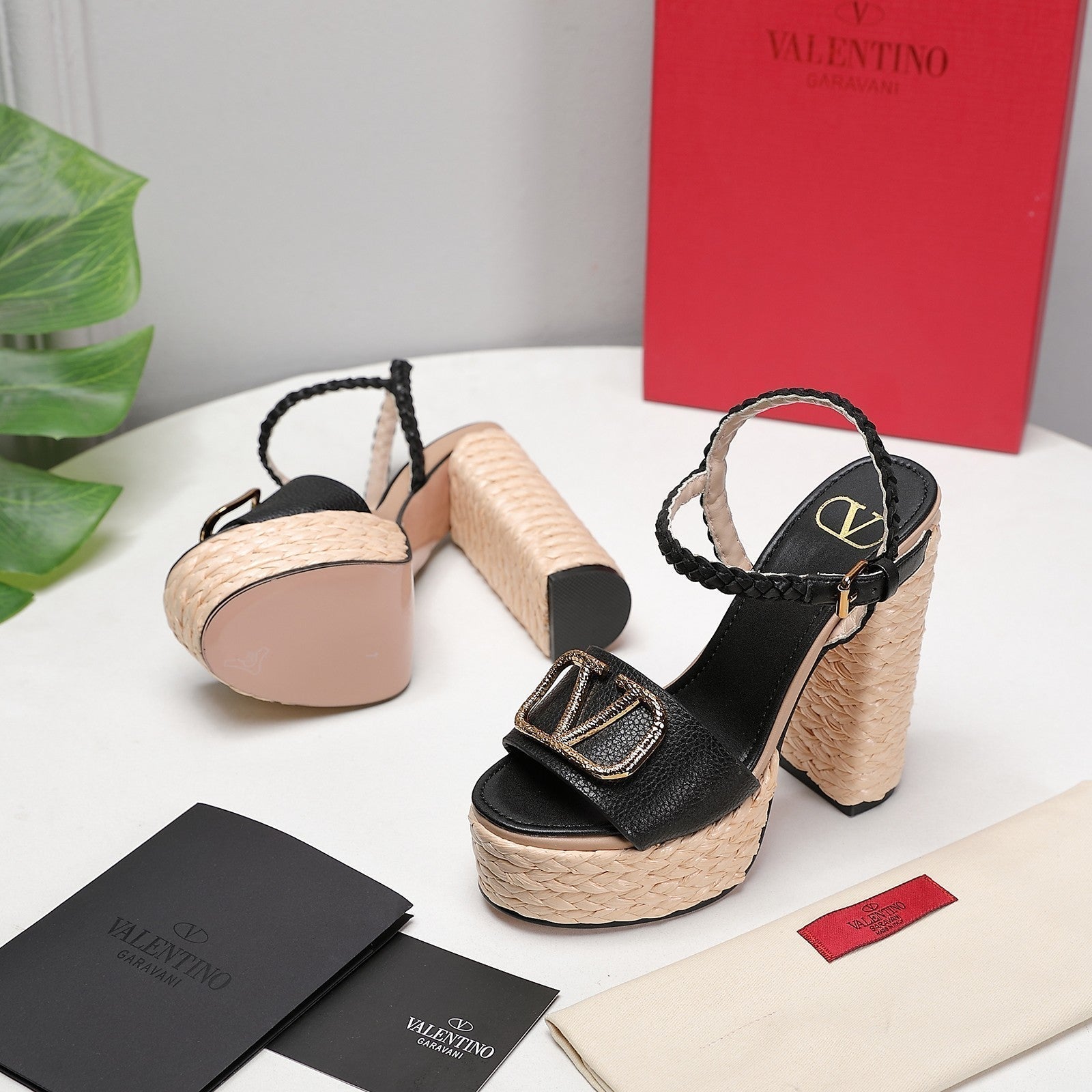 VT 25 Platform Sandals Black Cowhide Espadrilles 363020