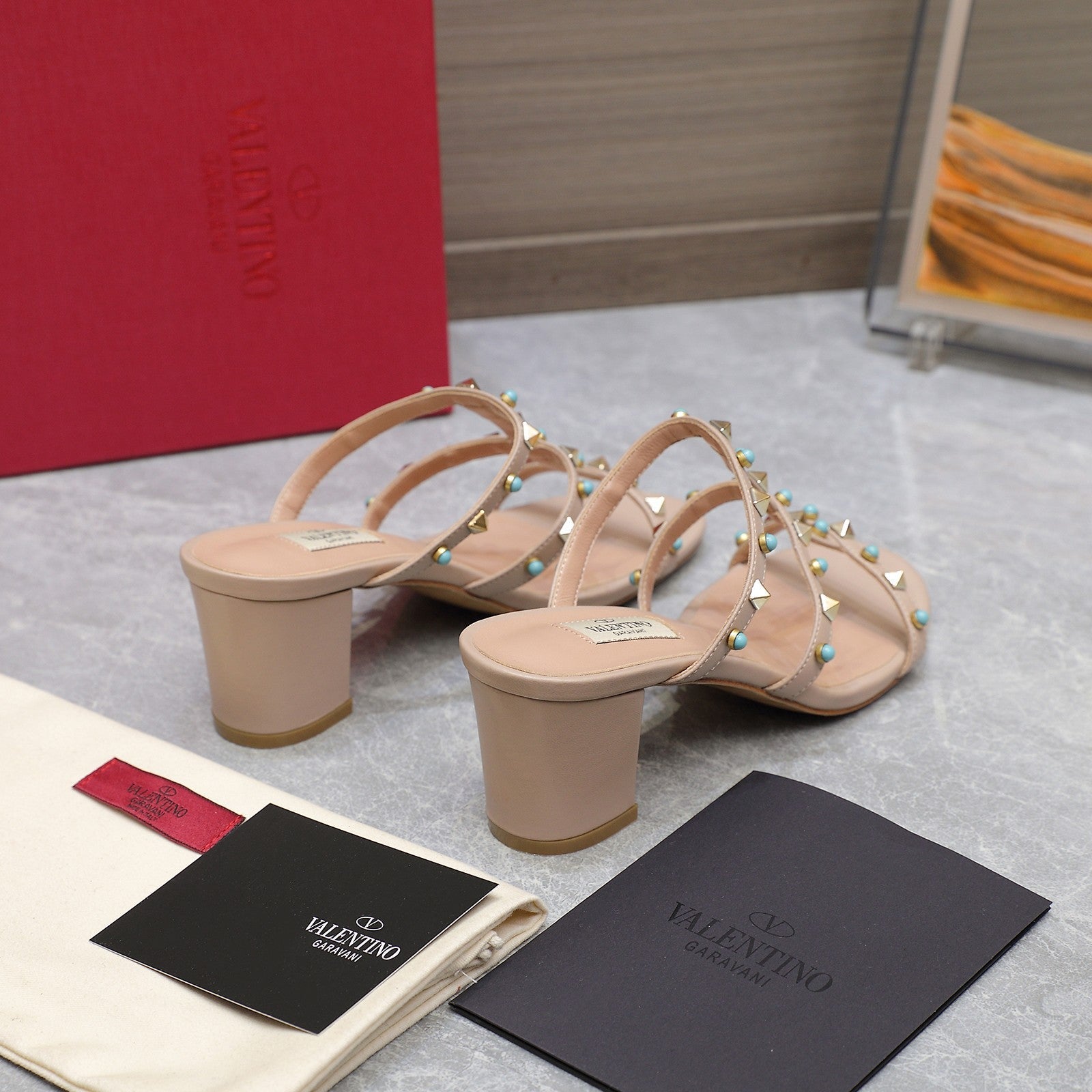 VT 25 Rockstud Heeled Sandals Nude Sheepskin 289666