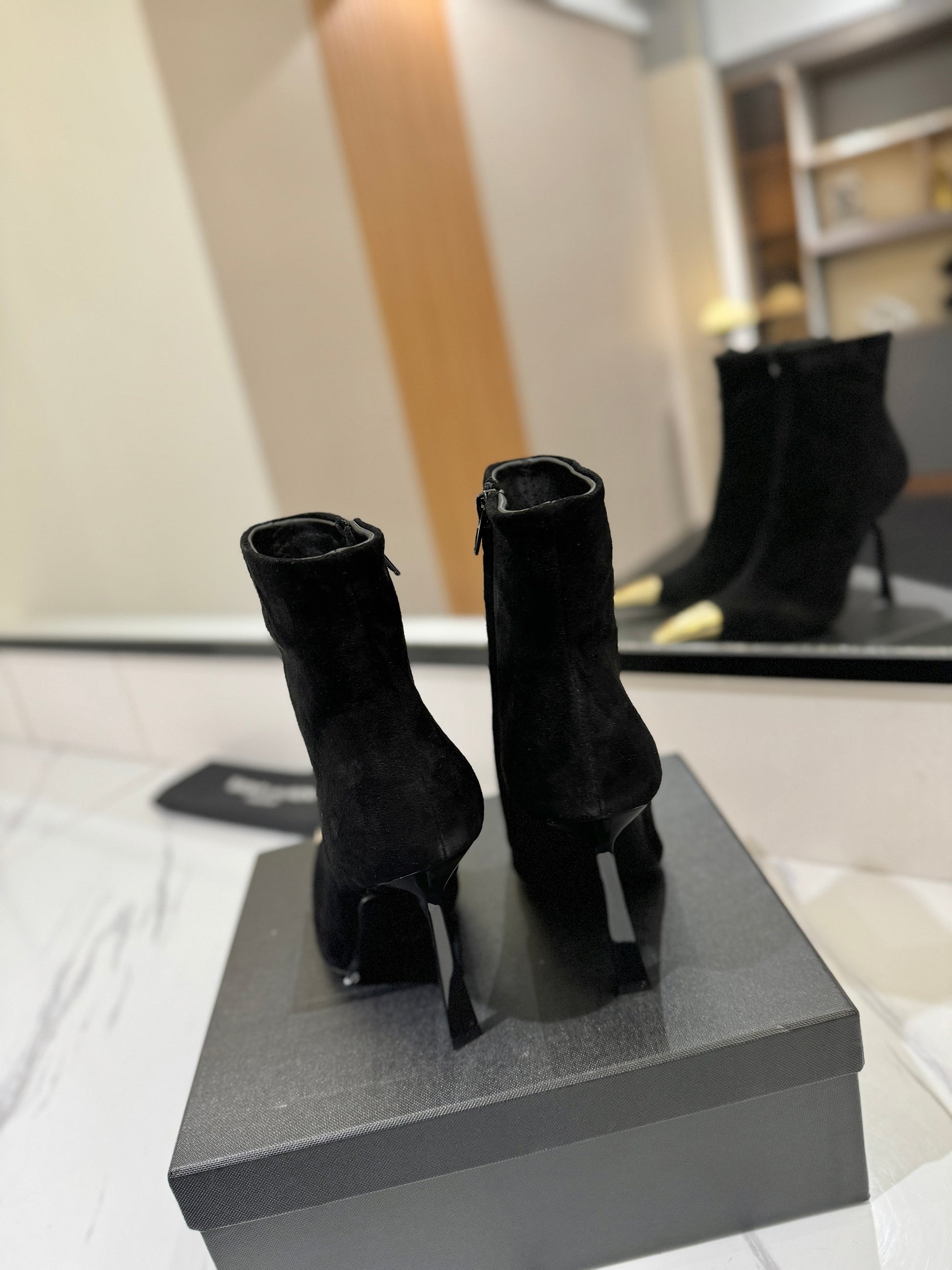 YSL 25 Metal Toe Short Boot Black Gold Suede 520787
