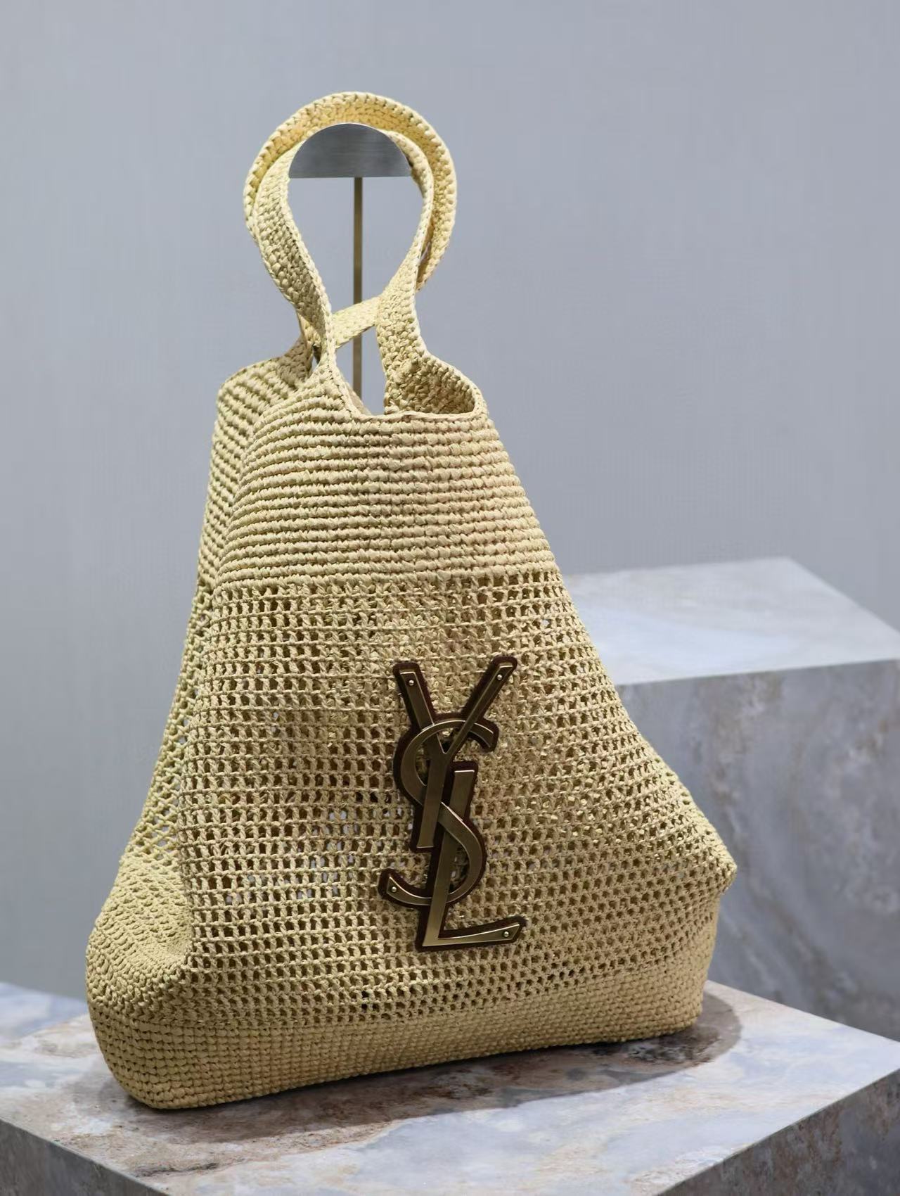 YSL Icare Bag Beige Woven Raffia